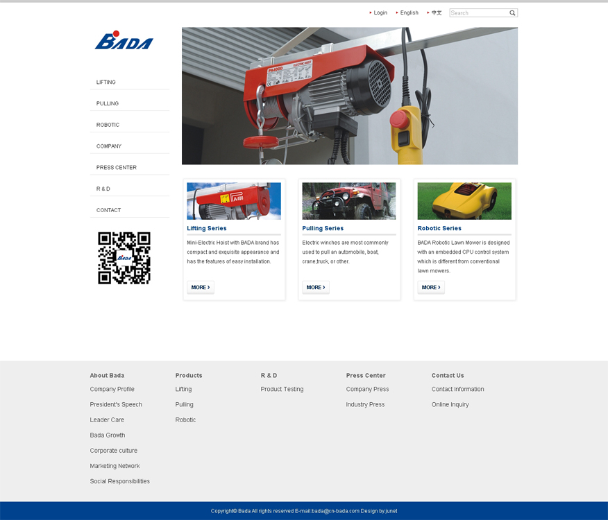 Bada Mechanical & Electrical Co. Ltd Provides Products Of Electric Hoist, Electric Hoist Trolley, Cheap Electric Winch, Best Electric Windlass, Electric Lawn Mower, Rotary Hoist Frame And More.
